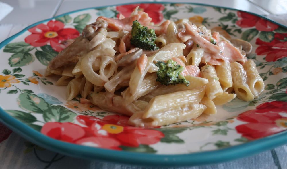 Jan 27, 2016 · pasta tossed with a creamy parmesan sauce and flakes of salmon.